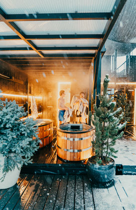 PORTAL° Bozeman is our newest outdoor club featuring an aesthetic blend of sauna and cold plunge contrast therapy offering a place to chill, sweat, and connect. Our Bozeman club offers two saunas, five individual cold plunge tubs, social spaces and amenities like a rooftop deck, changing spaces, and indoor clubhouse. Guests generally alternate between heat exposure (sauna) and cold exposure (cold plunge) three times per session, spending 15 minutes in the heat and 3 minutes in the cold. We ask that guests are respectful of their booking window to allow others to enjoy the club. We have towels available to add-on to your session and we recommend wearing or bringing either a swimsuit or clothing that can get wet. Water and electrolytes are complementary throughout your session and merchandise is available for purchase.